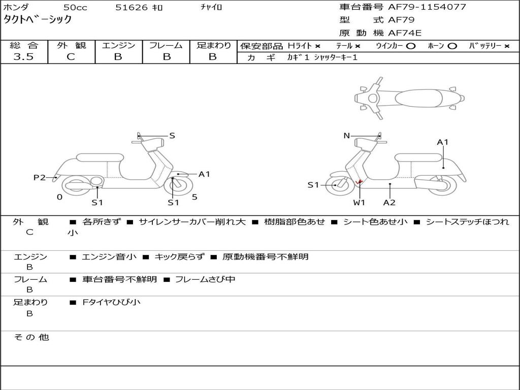 | Номер рамы / VIN | AF79-1154077 |