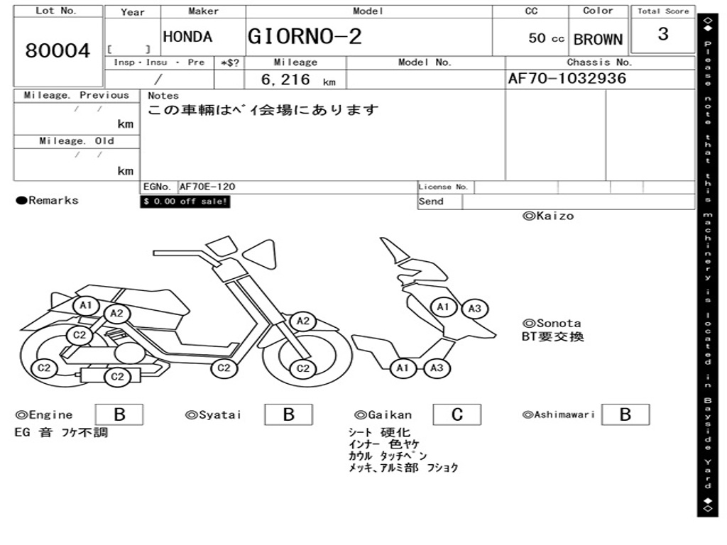 | Аукцион | ARAI BAYSIDE |