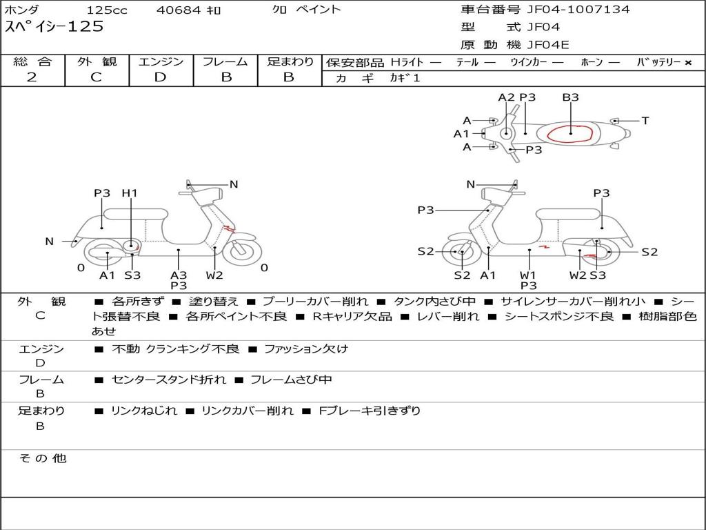 | Номер рамы / VIN | JF04-1007134 |