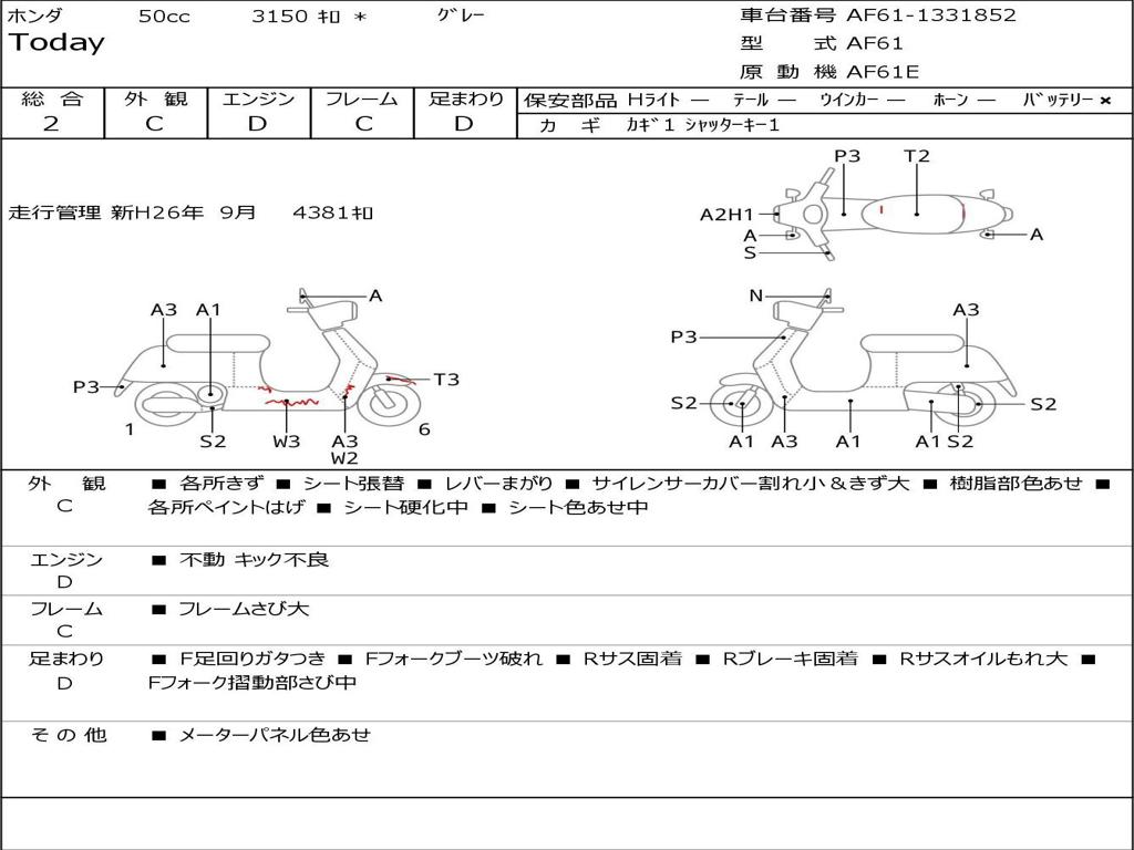 | Номер рамы / VIN | AF61-1331852 |
