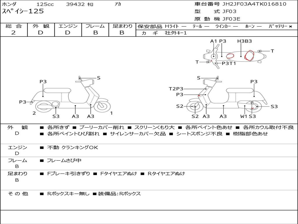| Номер рамы / VIN | JH2JF03A4TK016810 |
