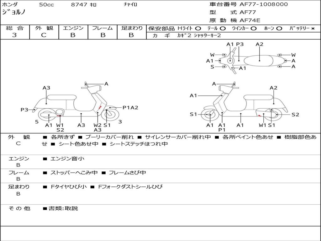 | Номер рамы / VIN | AF77-1008000 |