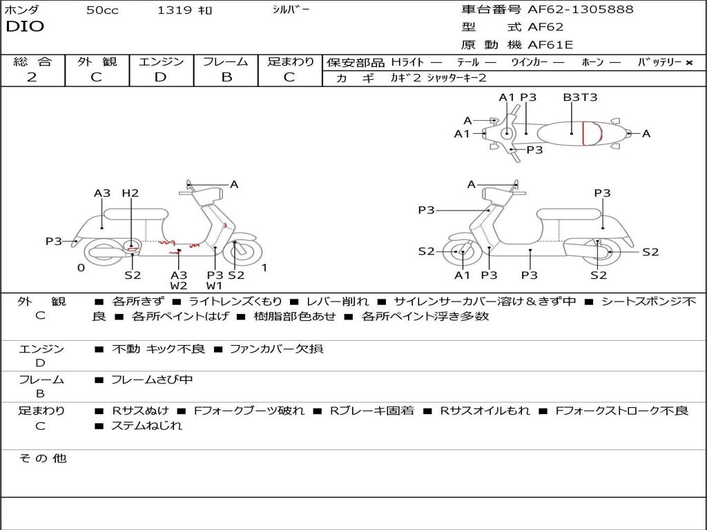 | Номер рамы / VIN | AF62-1305888 |
