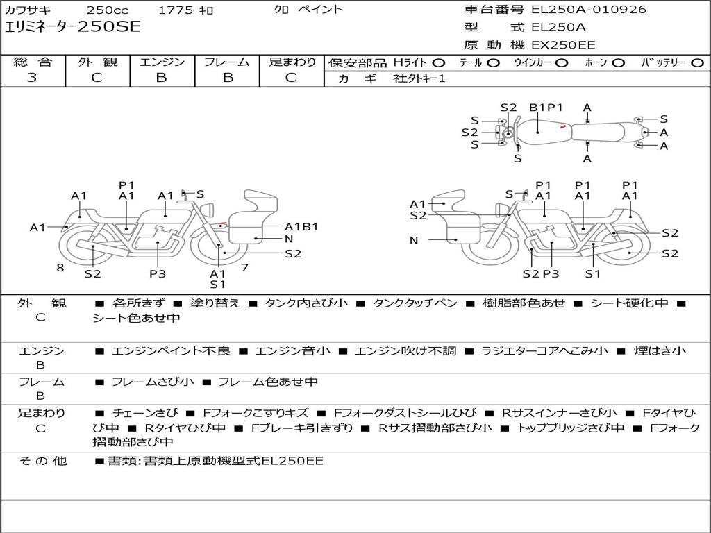 | Номер рамы / VIN | EL250A-010926 |
