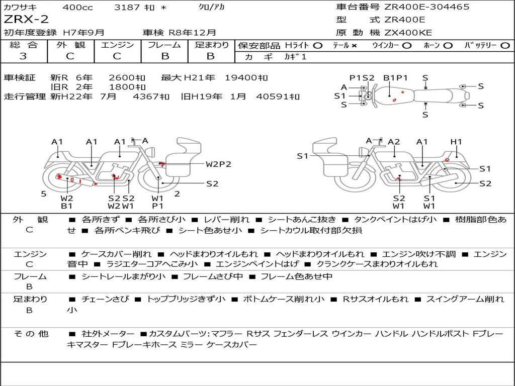 | Номер рамы / VIN | ZR400E-304465 |