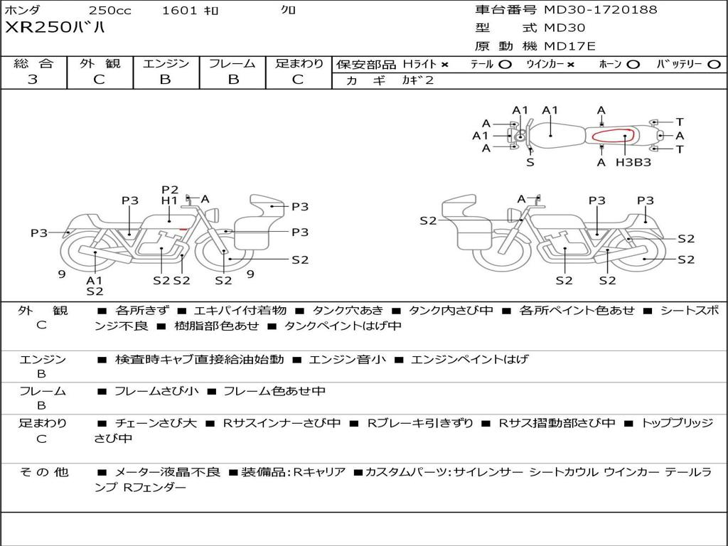 | Номер рамы / VIN | MD30-1720188 |