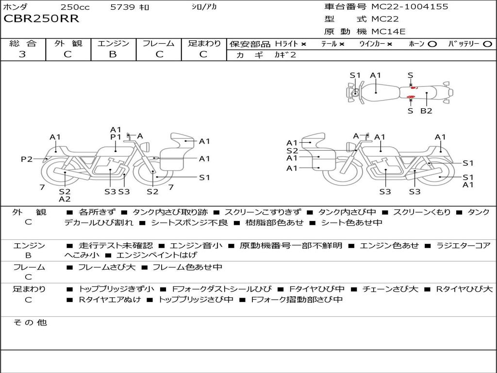 | Номер рамы / VIN | MC22-1004155 |