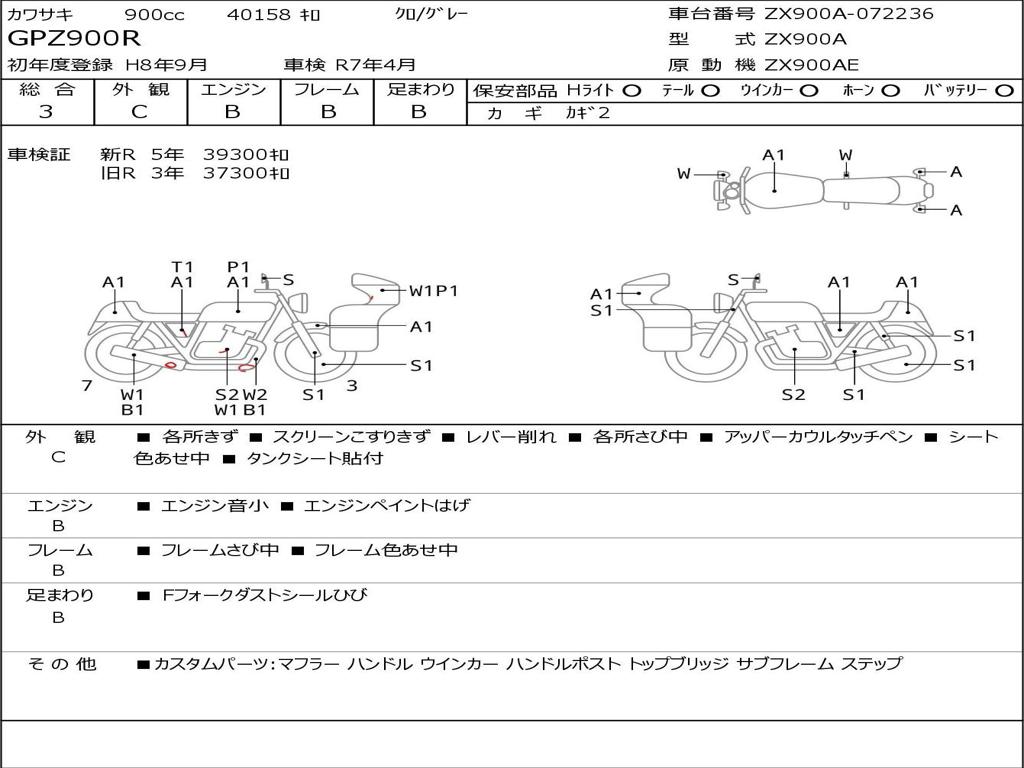 | Номер рамы / VIN | ZX900A-072236 |