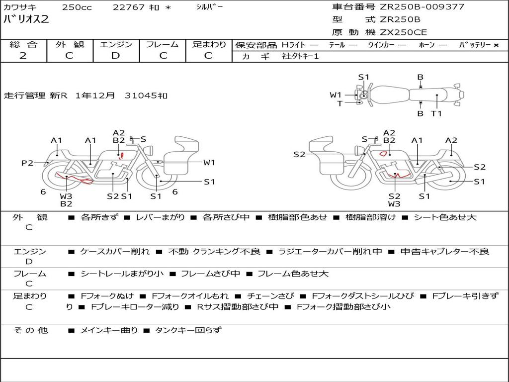 | Номер рамы / VIN | ZR250B-009377 |