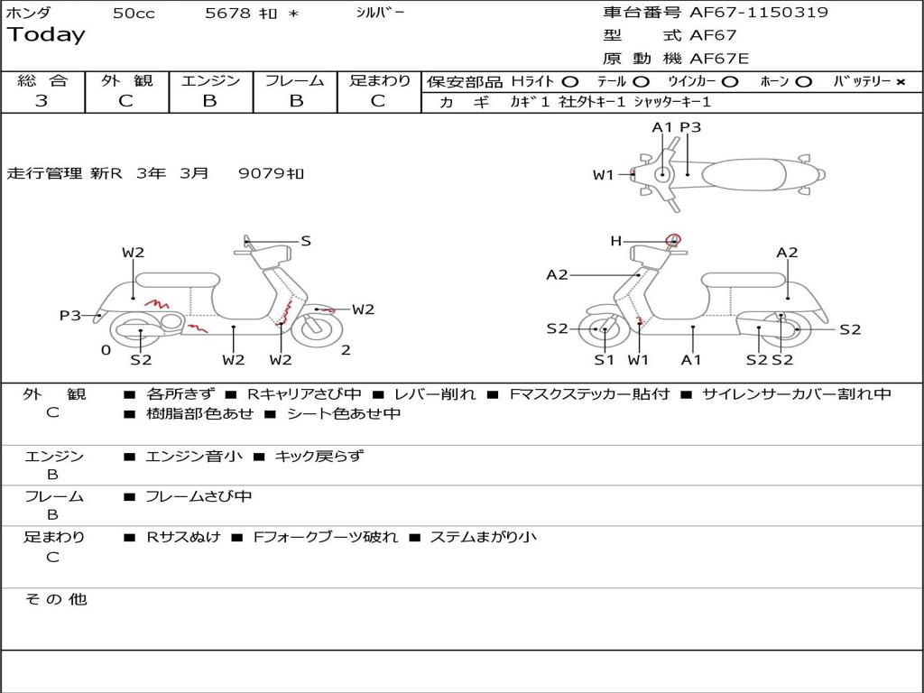 | Номер рамы / VIN | AF67-1150319 |