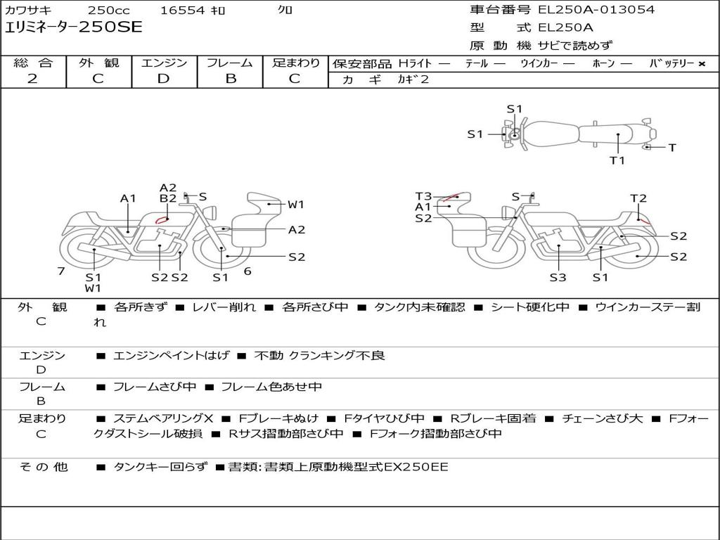 | Номер рамы / VIN | EL250A-013054 |