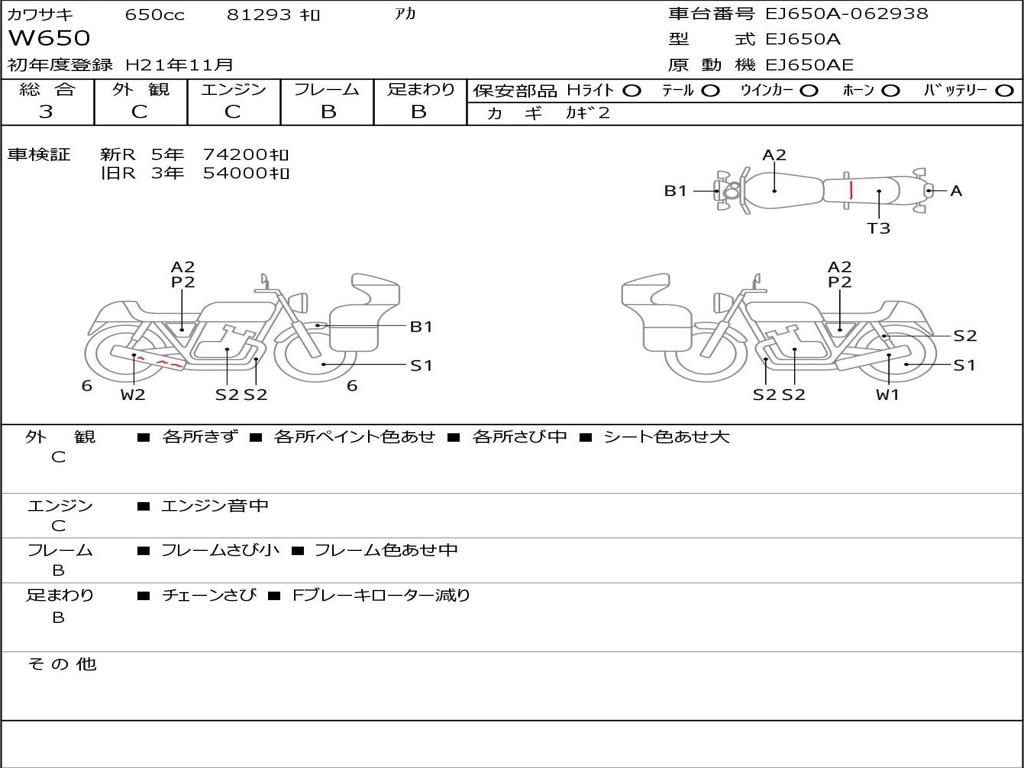 | Номер рамы / VIN | EJ650A-062938 |