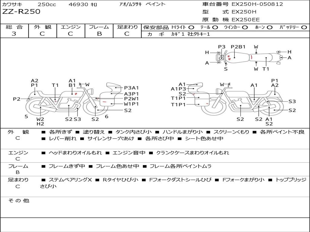 | Номер рамы / VIN | EX250H-050812 |