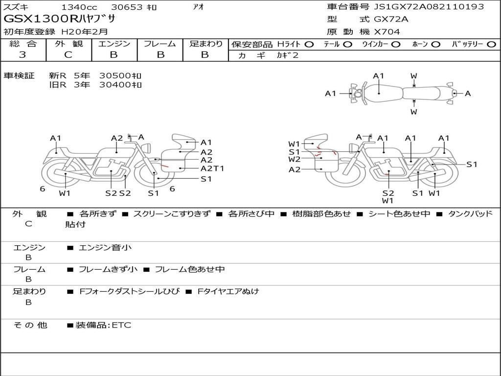 | Номер рамы / VIN | JS1GX72A082110193 |