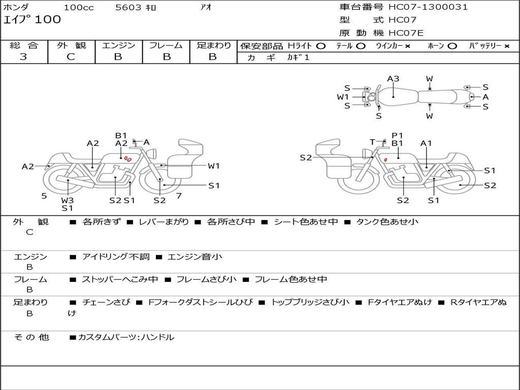 | Номер рамы / VIN | HC07-1300031 |