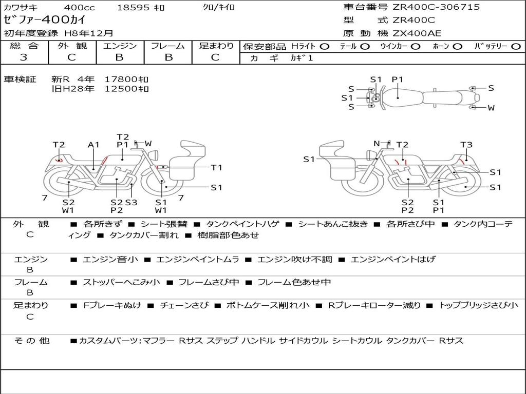 | Номер рамы / VIN | ZR400C-306715 |