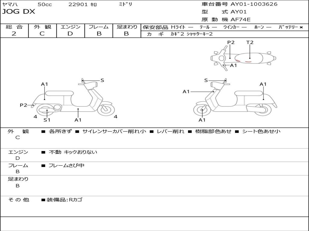 | Номер рамы / VIN | AY01-1003626 |