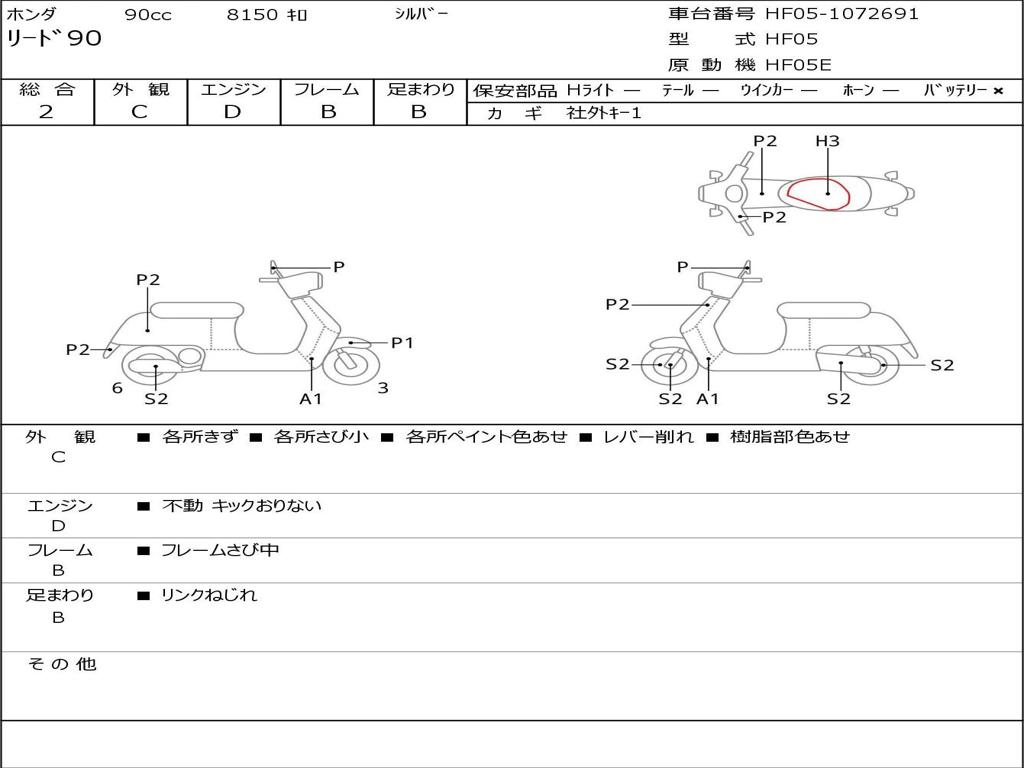 | Номер рамы / VIN | HF05-1072691 |