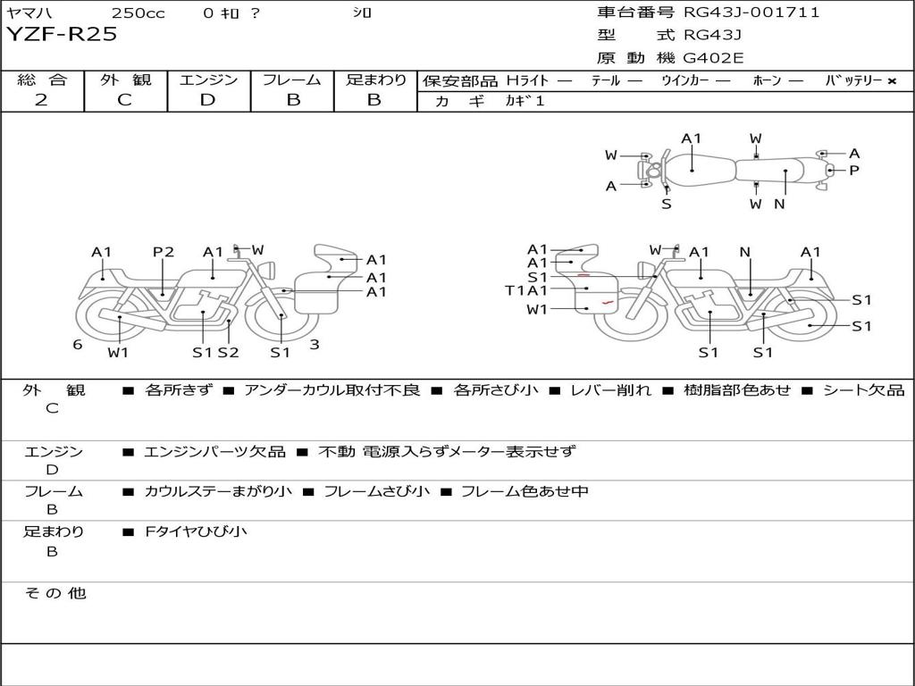 | Номер рамы / VIN | RG43J-001711 |