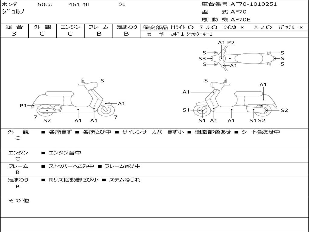 | Номер рамы / VIN | AF70-1010251 |