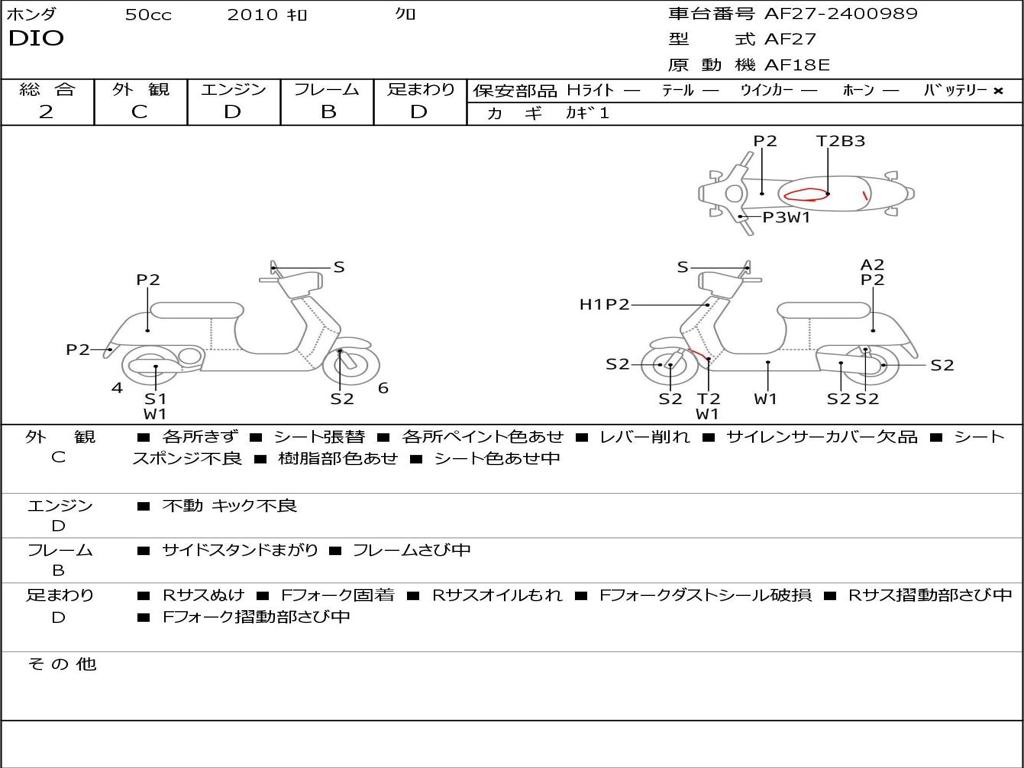 | Номер рамы / VIN | AF27-2400989 |