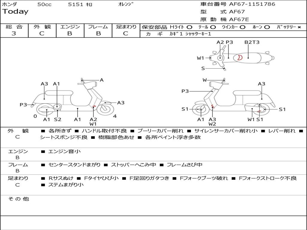 | Номер рамы / VIN | AF67-1151786 |