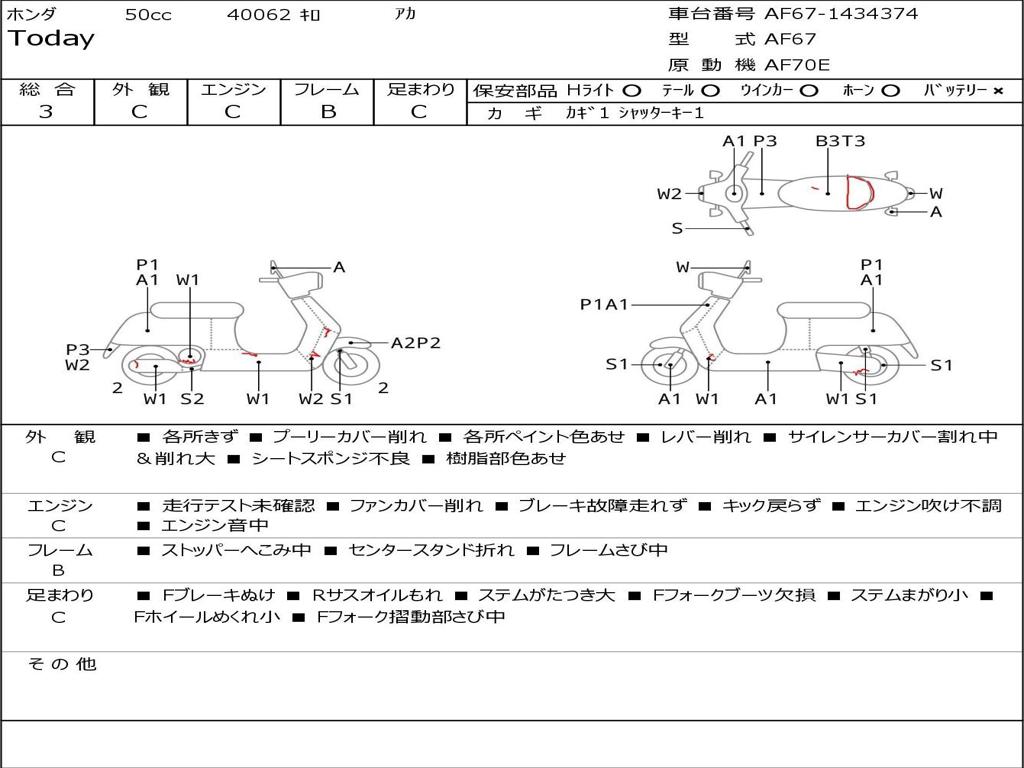 | Номер рамы / VIN | AF67-1434374 |