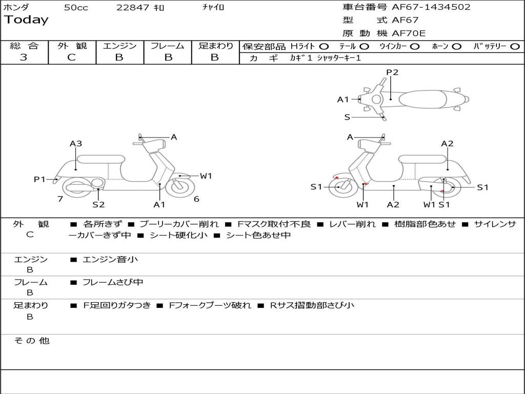 | Номер рамы / VIN | AF67-1434502 |