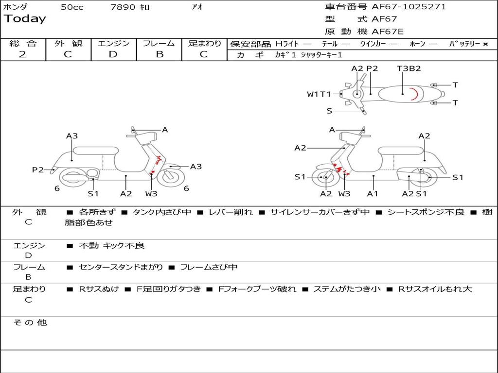 | Номер рамы / VIN | AF67-1025271 |