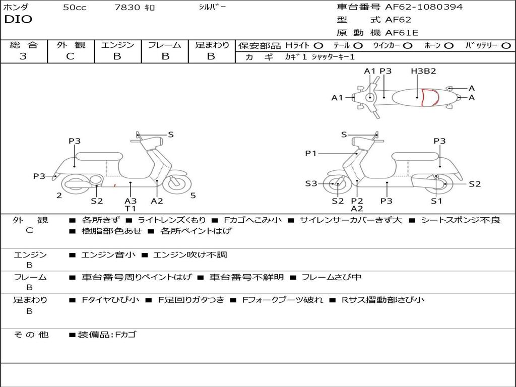 | Номер рамы / VIN | AF62-1080394 |