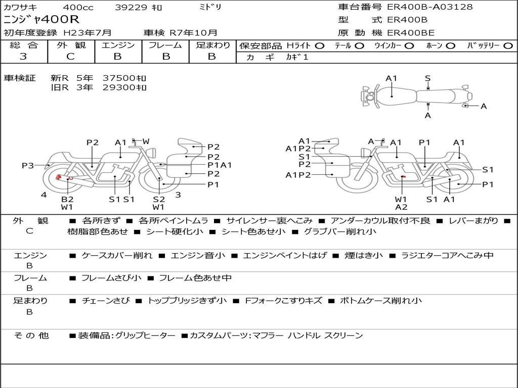 | Номер рамы / VIN | ER400B-A03128 |