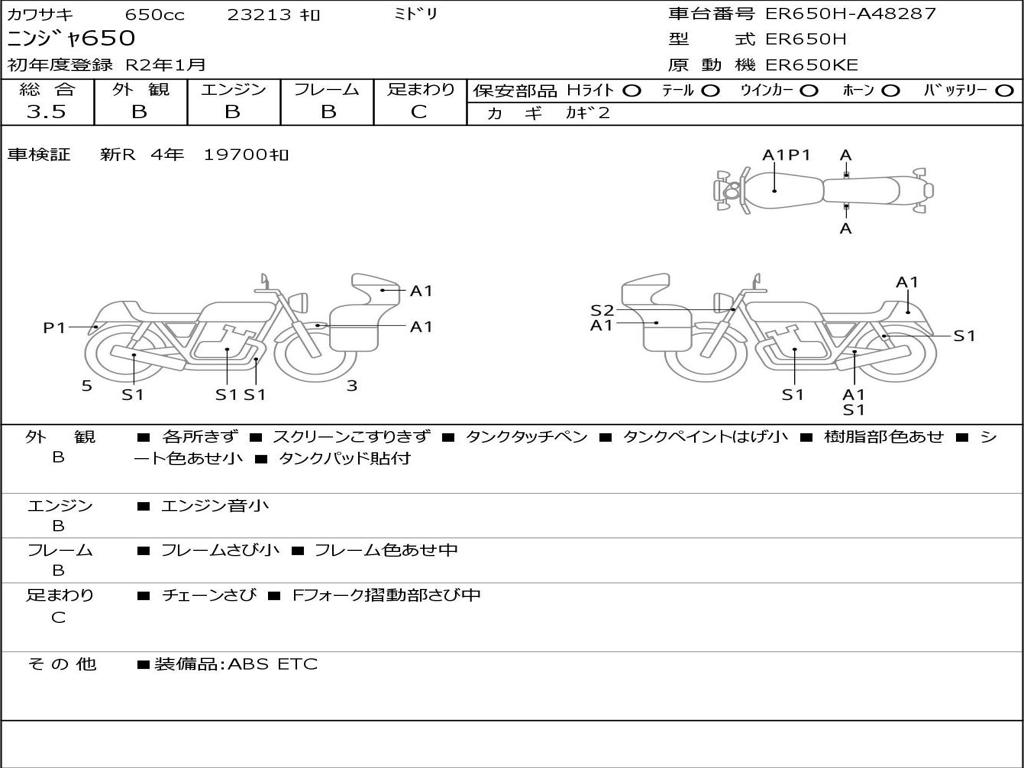 | Номер рамы / VIN | ER650H-A48287 |