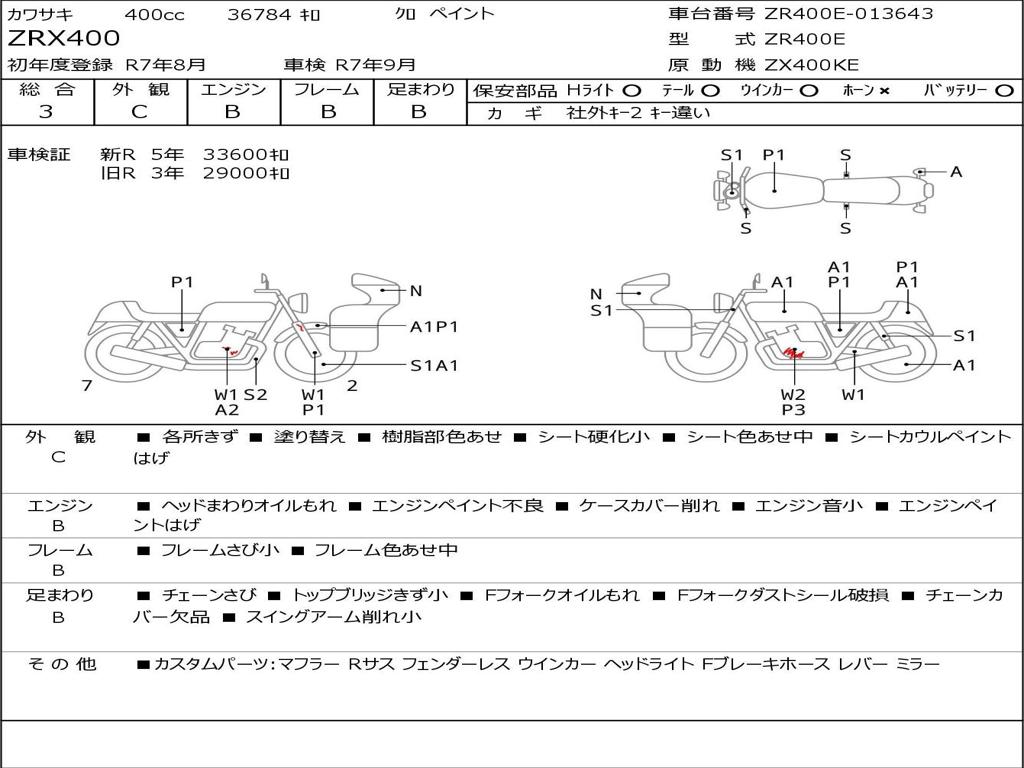 | Номер рамы / VIN | ZR400E-013643 |