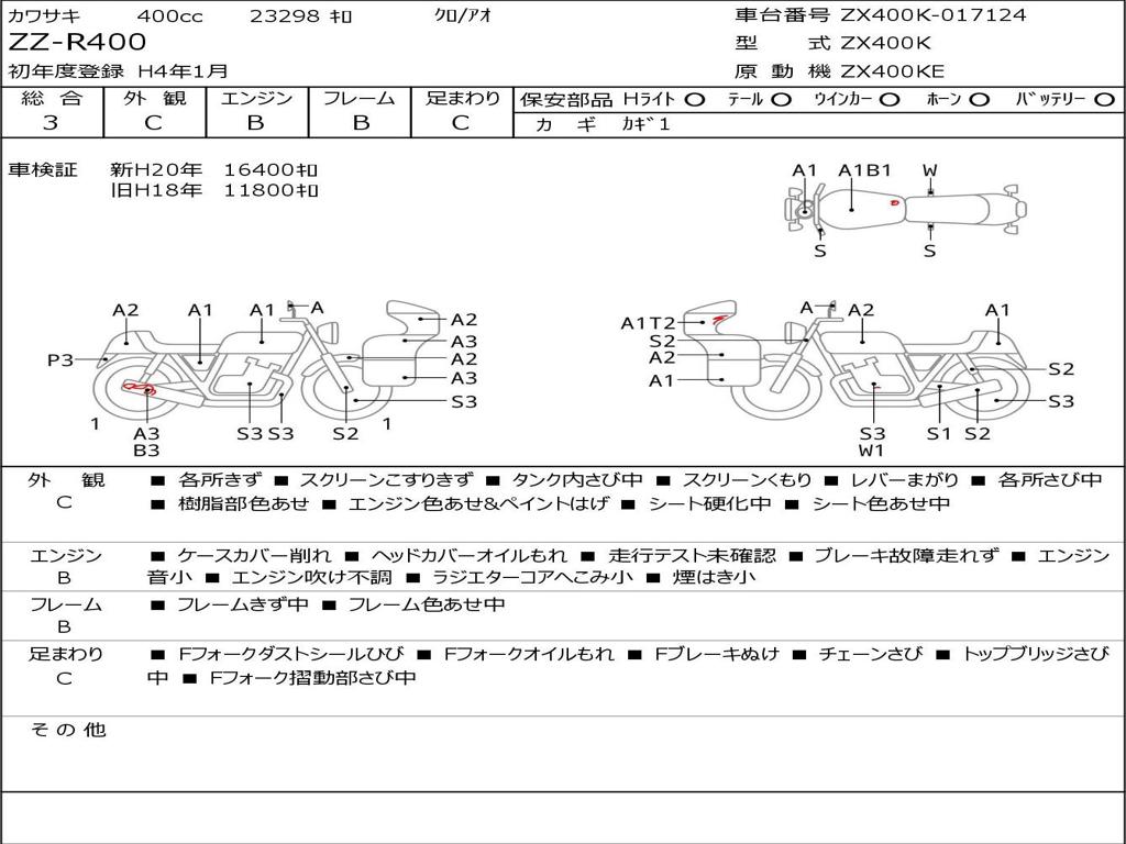 | Номер рамы / VIN | ZX400K-017124 |