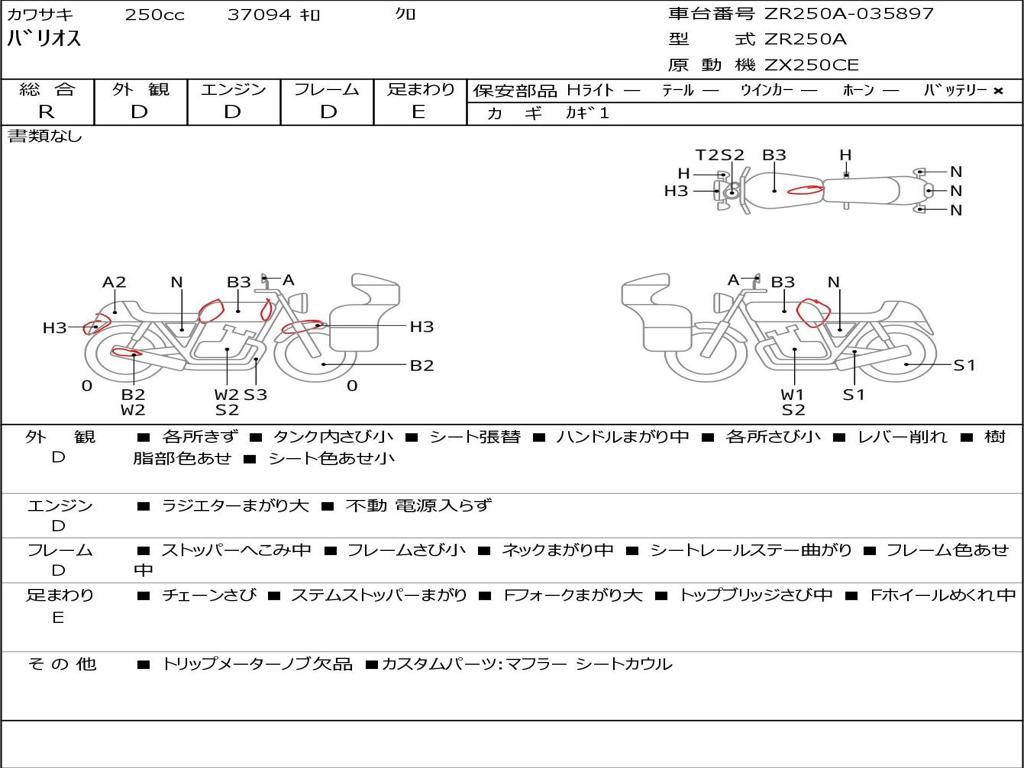 | Номер рамы / VIN | ZR250A-035897 |