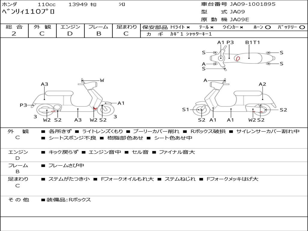 | Номер рамы / VIN | JA09-1001895 |