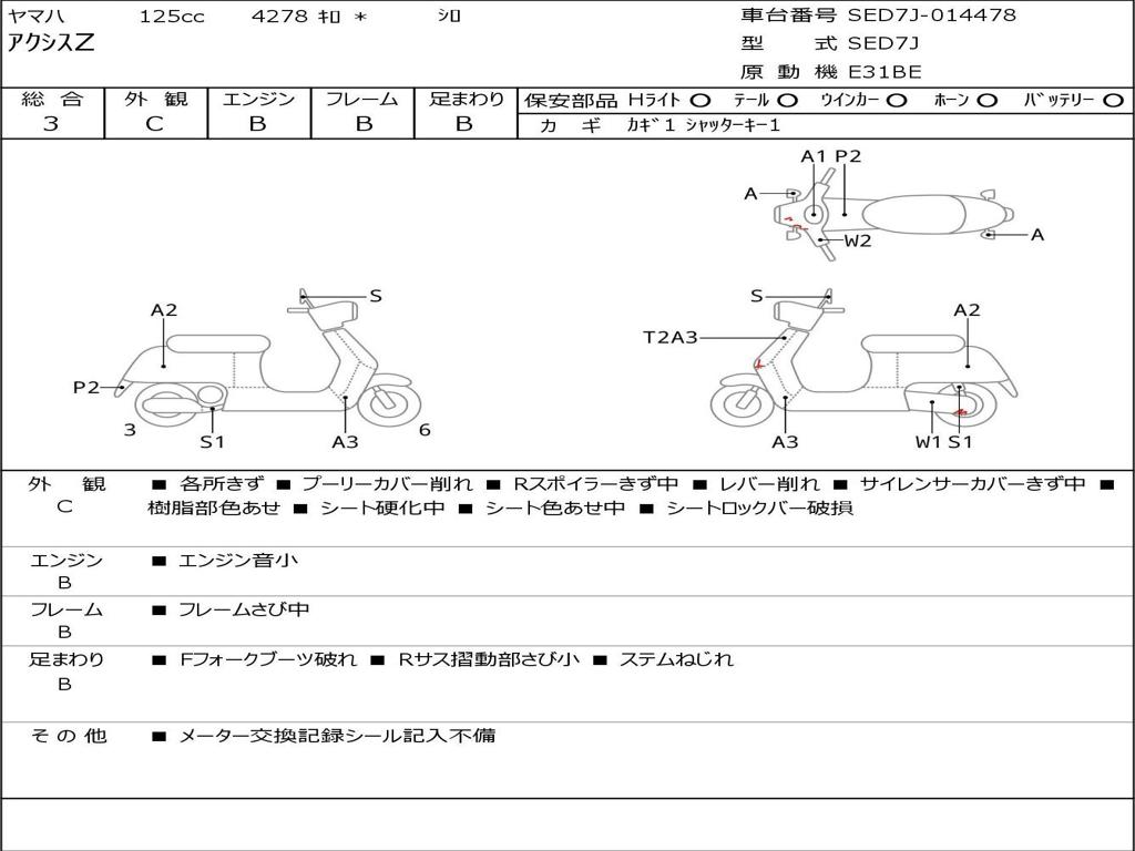 | Номер рамы / VIN | SED7J-014478 |