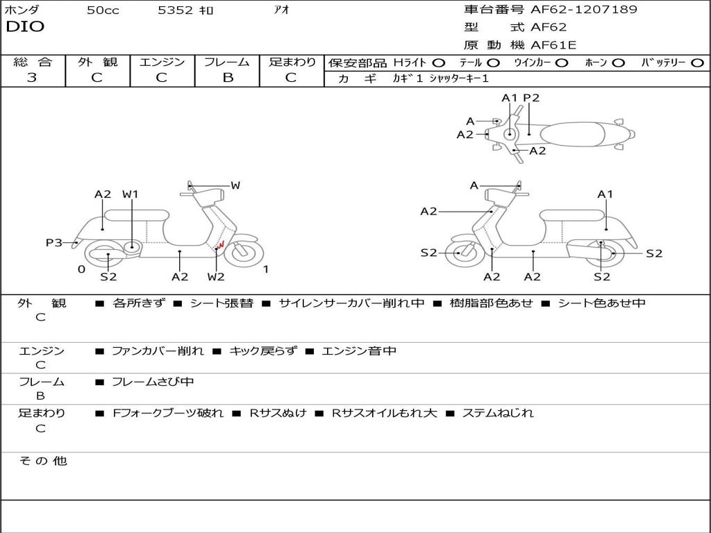 | Номер рамы / VIN | AF62-1207189 |