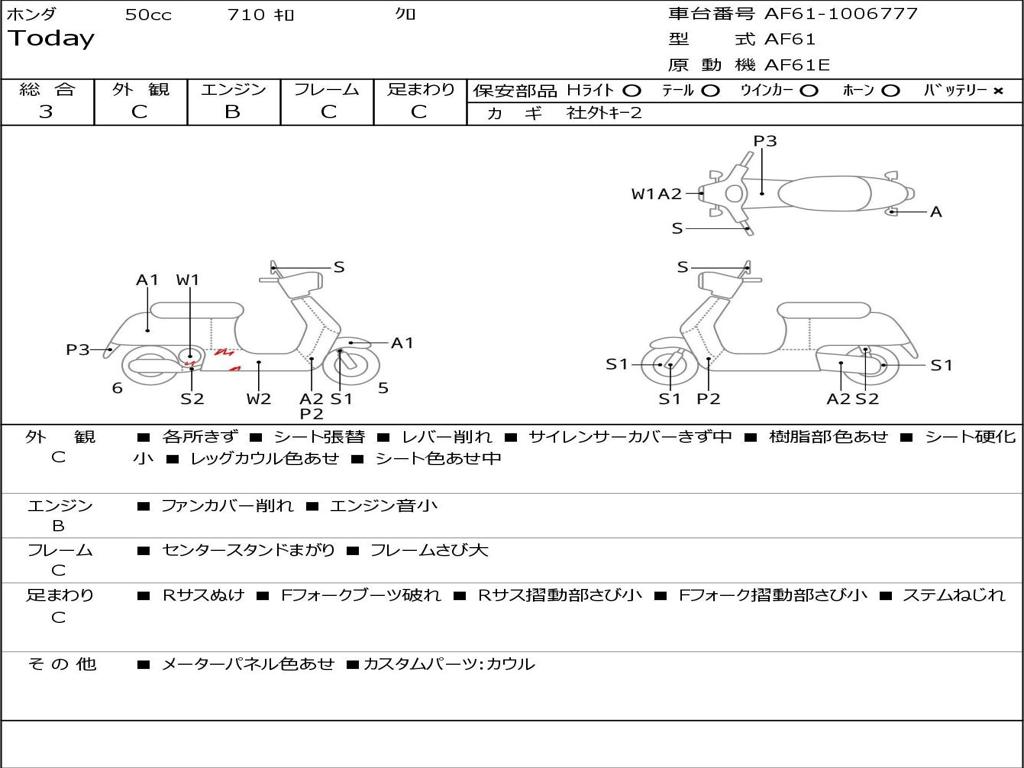 | Номер рамы / VIN | AF61-1006777 |