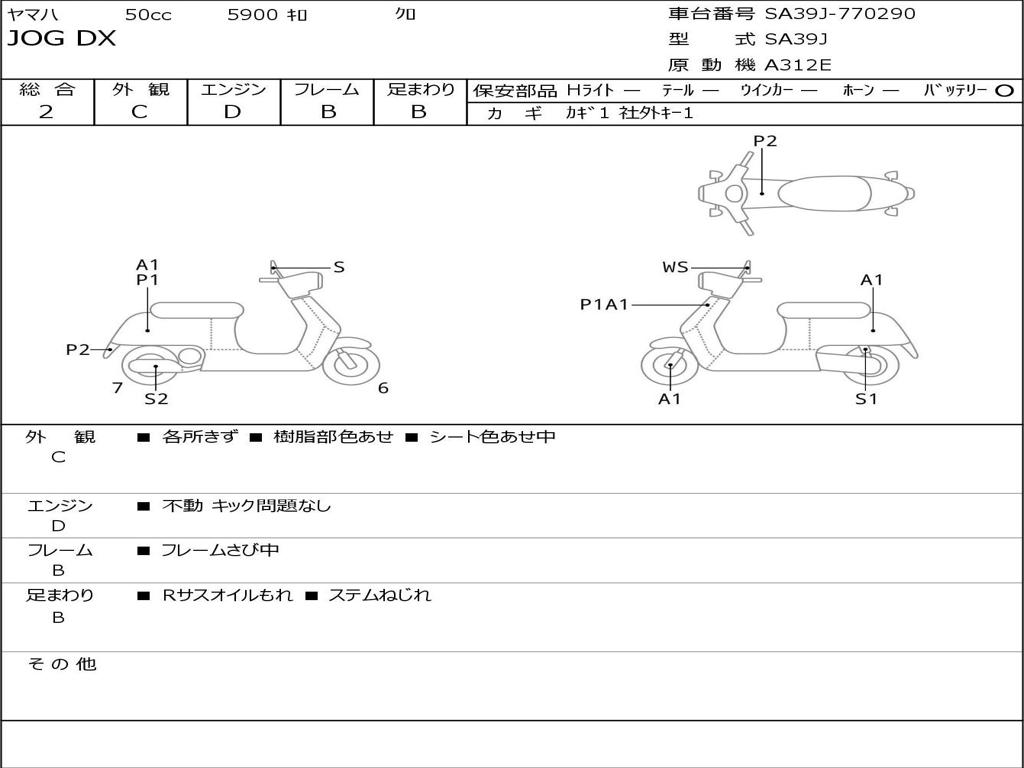 | Номер рамы / VIN | SA39J-770290 |