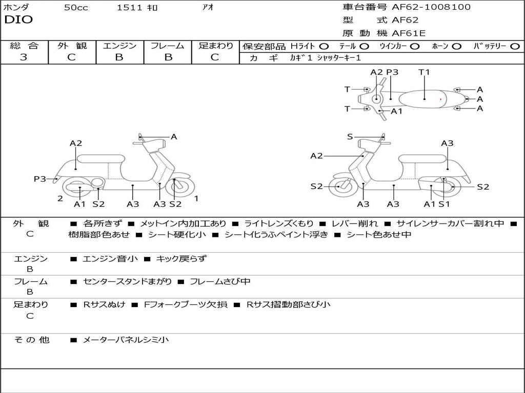 | Номер рамы / VIN | AF62-1008100 |
