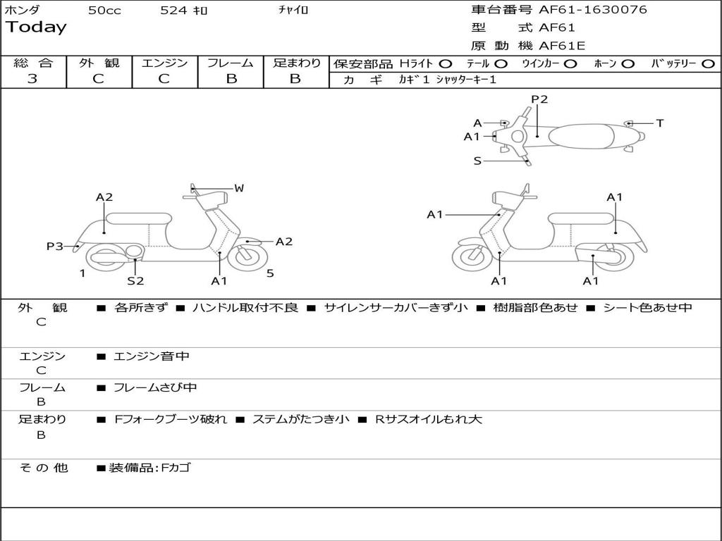 | Номер рамы / VIN | AF61-1630076 |