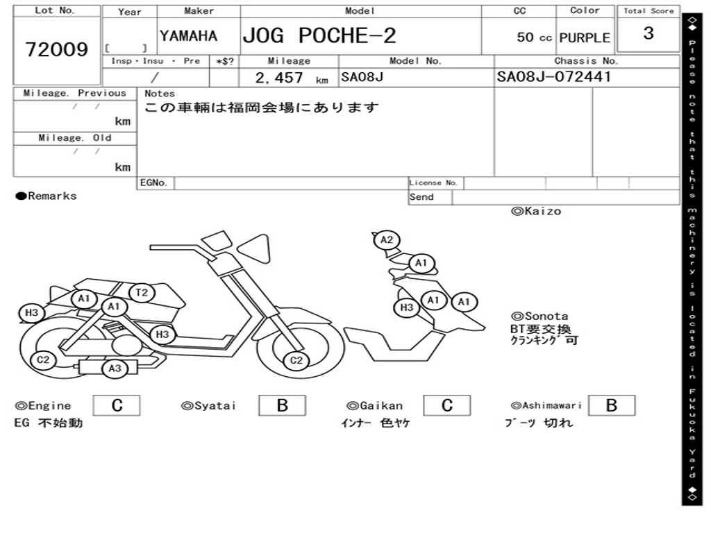 | Номер рамы / VIN | SA08J-072441 |