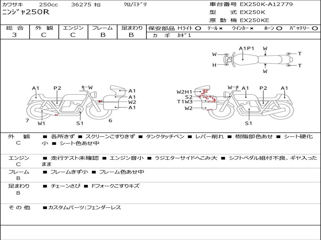 | Номер рамы / VIN | EX250K-A12779 |