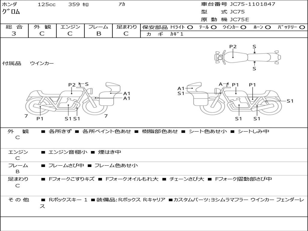 | Номер рамы / VIN | JC75-1101847 |