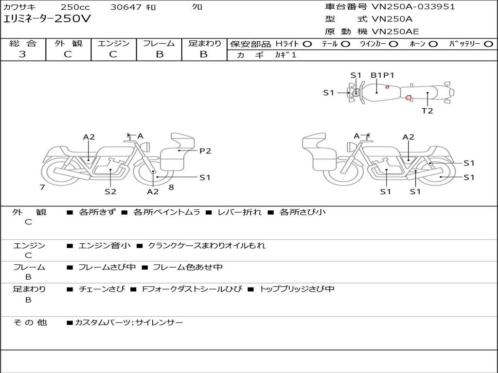 | Номер рамы / VIN | VN250A-033951 |