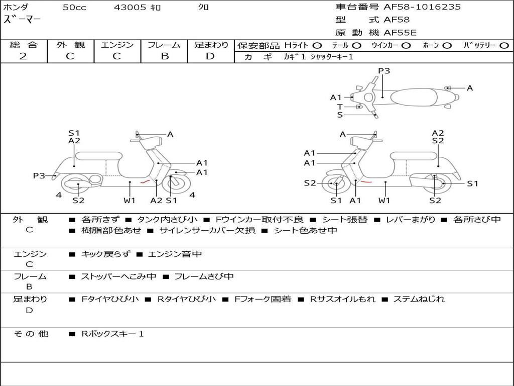 | Номер рамы / VIN | AF58-1016235 |