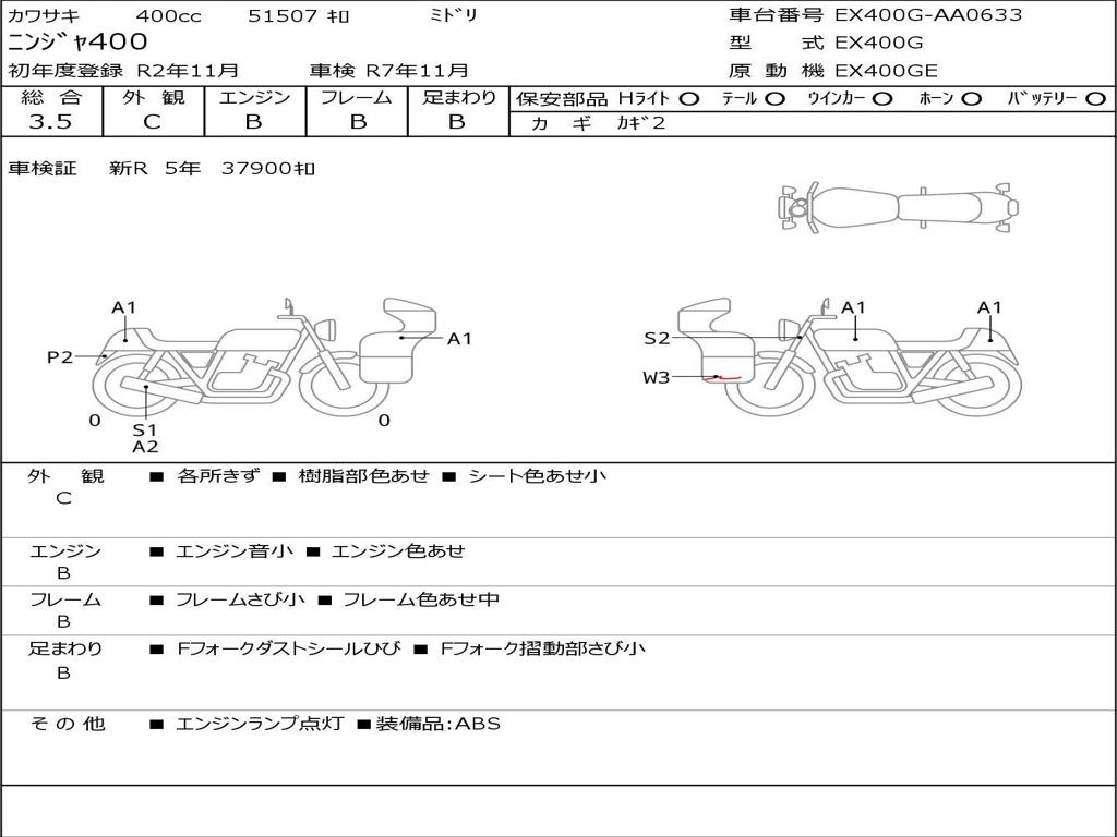 | Номер рамы / VIN | EX400G-AA0633 |