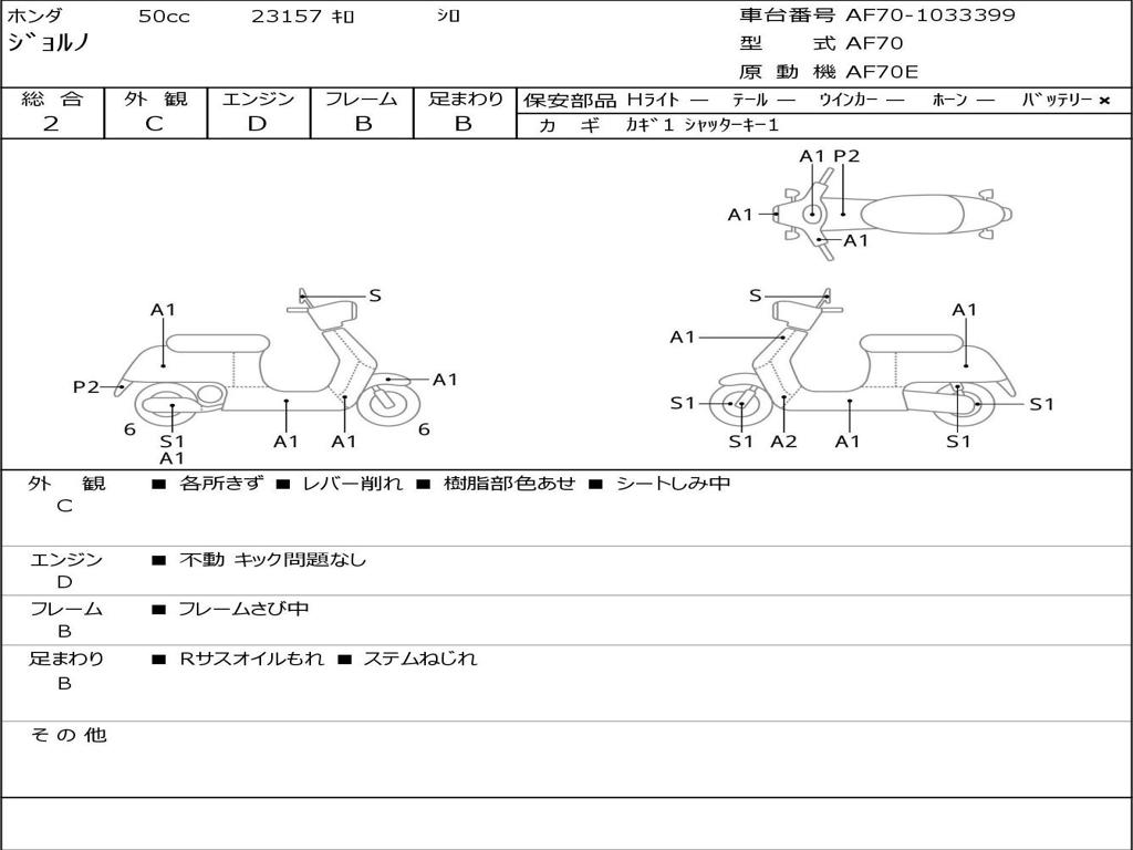 | Номер рамы / VIN | AF70-1033399 |