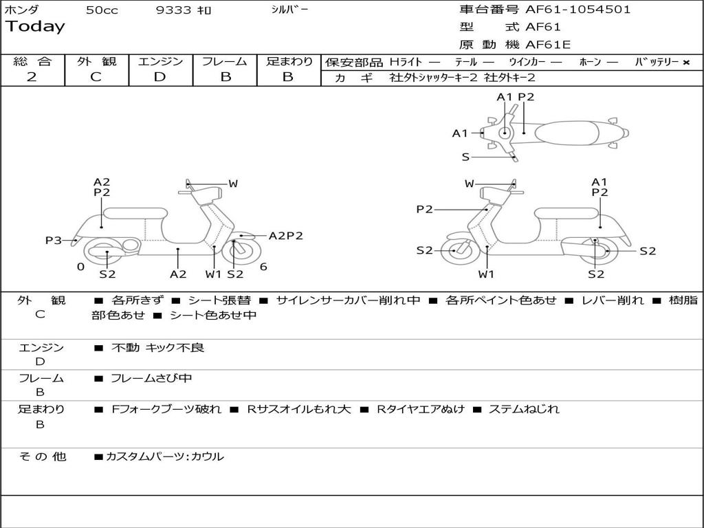 | Номер рамы / VIN | AF61-1054501 |